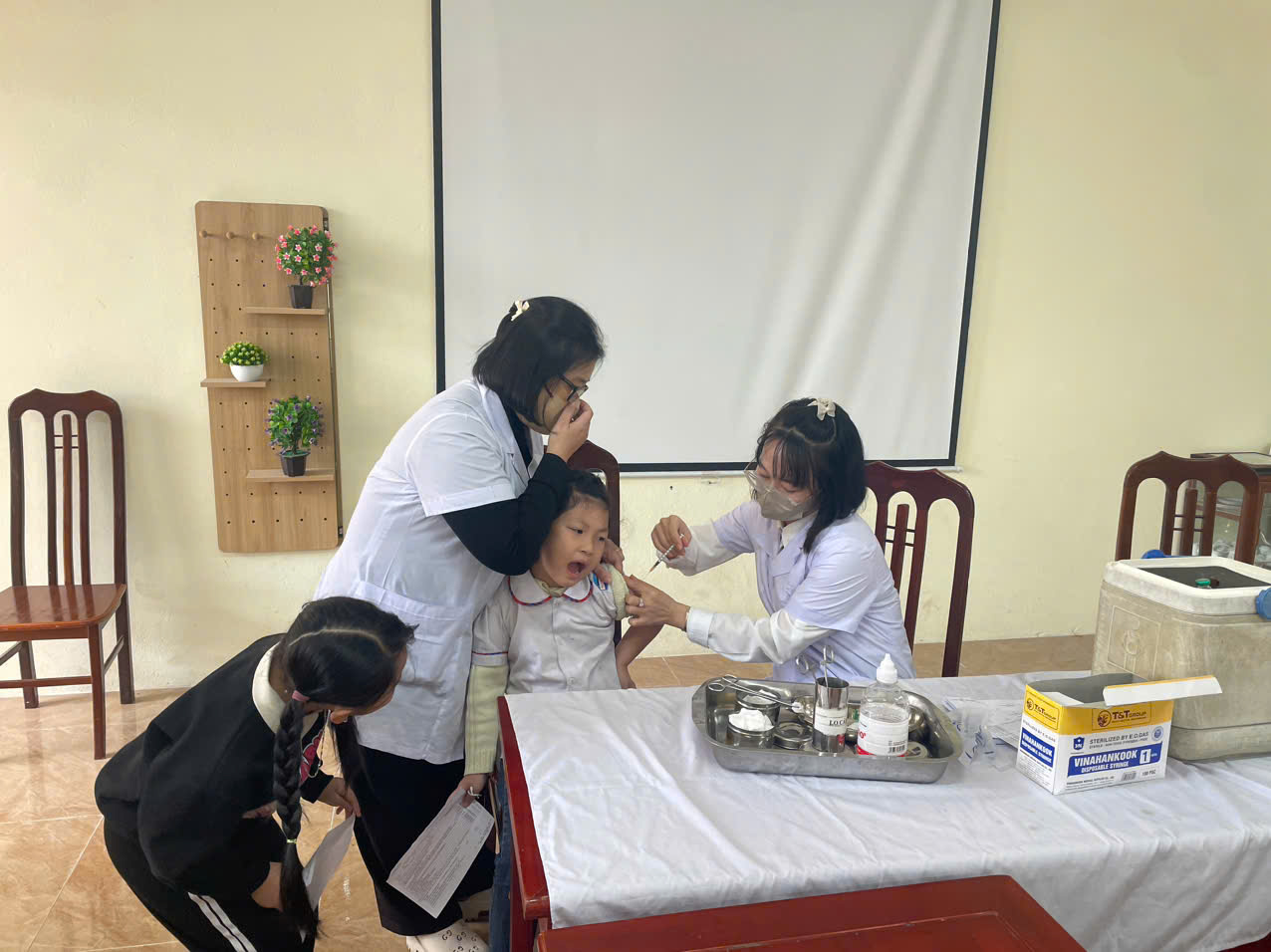 💖 Buổi tiêm chủng đã diễn ra an toàn, trật tự và nhanh chóng nhờ sự chuẩn bị chu đáo của đội ngũ y tế, sự phối hợp nhiệt tình của giáo viên, và đặc biệt là sự hợp tác tuyệt vời từ phía các em học sinh. Các con rất ngoan, dũng cảm và thực hiện tốt các quy định sau tiêm chủng.